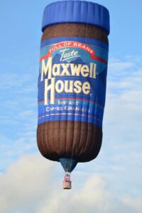 The latest balloon expected at Inflation Day is G-BVBJ. a Colt SS Flying Jar balloon built in 1993 and carrying Maxwell House branding.