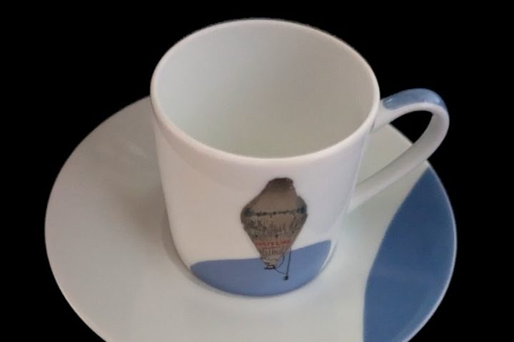 A commemorative cup and saucer made by the house of Limoges to mark the first successful circumnavigation of the world...